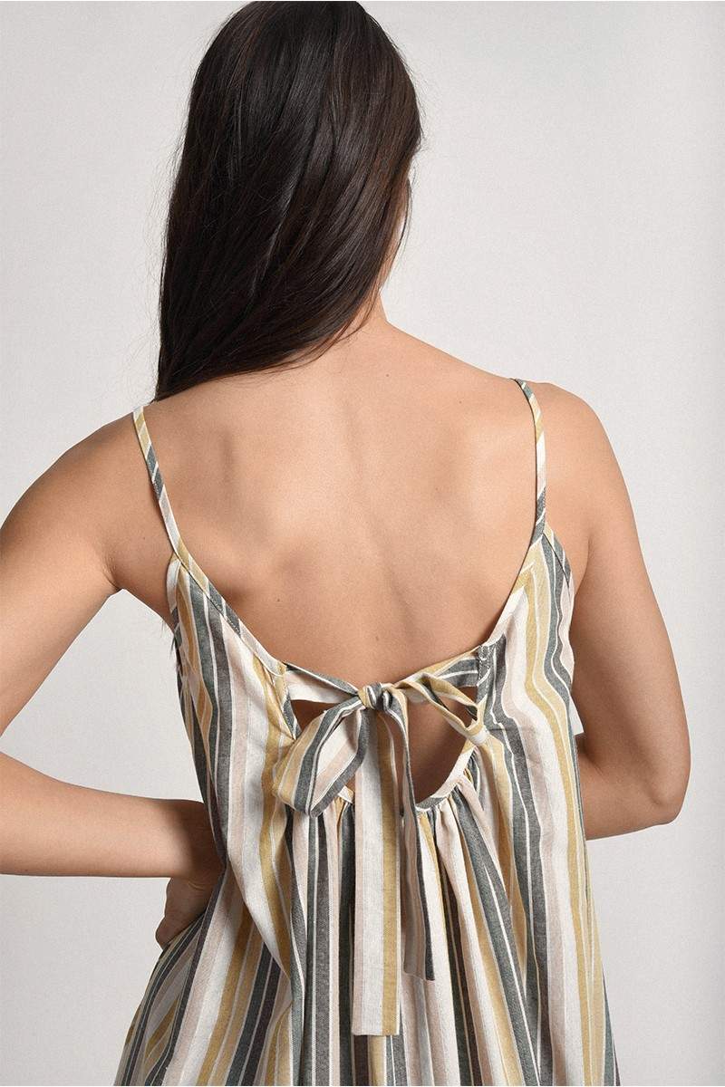 MOLLY BRACKEN STRIPED FLARE DRESS WITH BACK KNOT