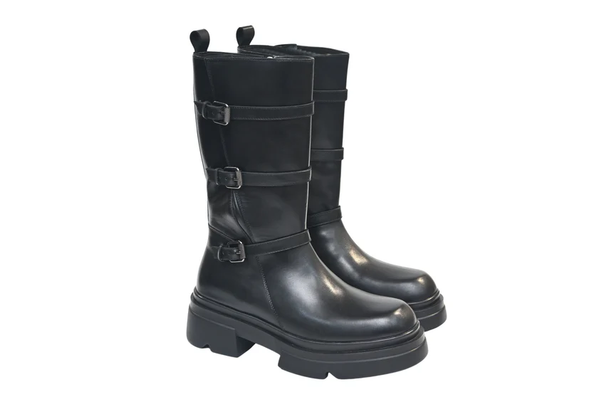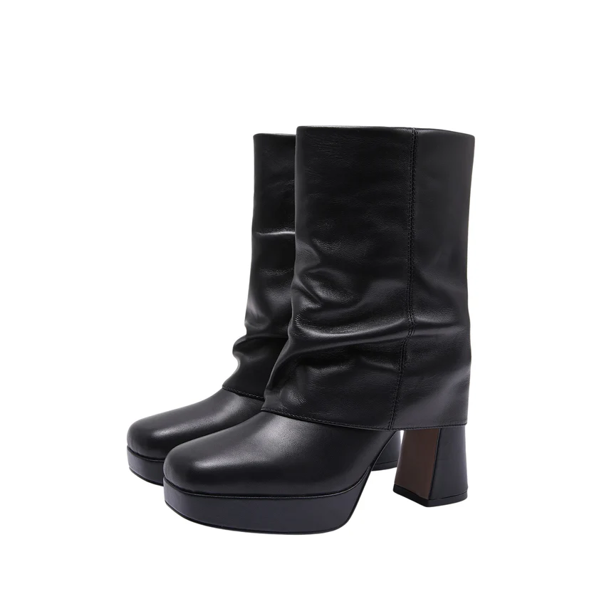 GIOSEPPO TARNET WOMEN’S KNEE-HIGH LEATHER BOOTS WITH WIDE HEELS AND PLATFORMS