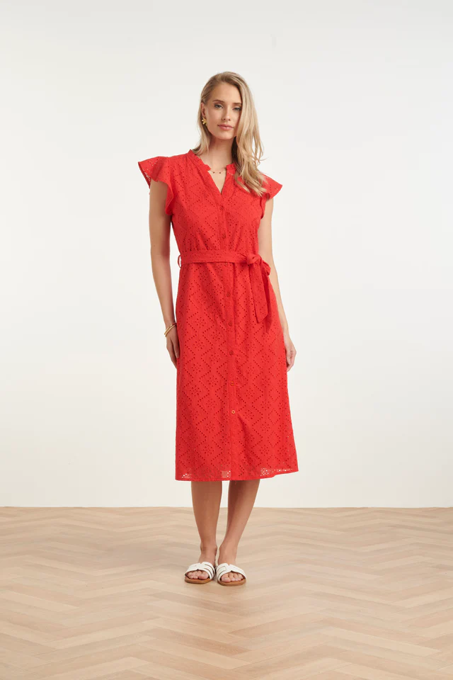 SMASHED LEMON ELEGAND BUTTON-DOWN DRESS WITH DELICATE FLORAL EMBROIDERY