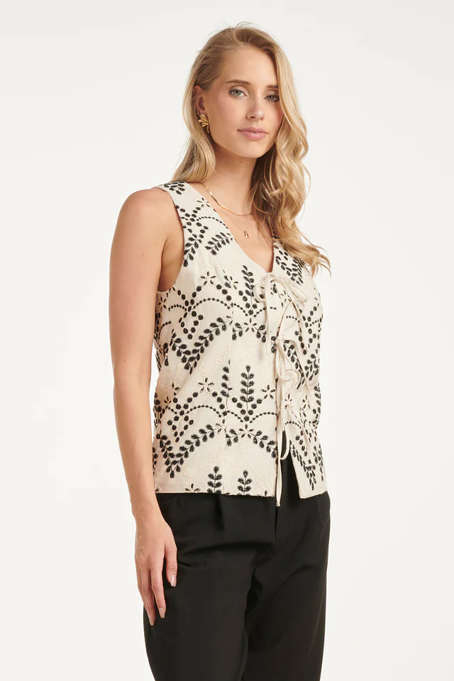 SMASHED LEMON STYLISH VEST WITH CONSTRASTING EMBROIDERY